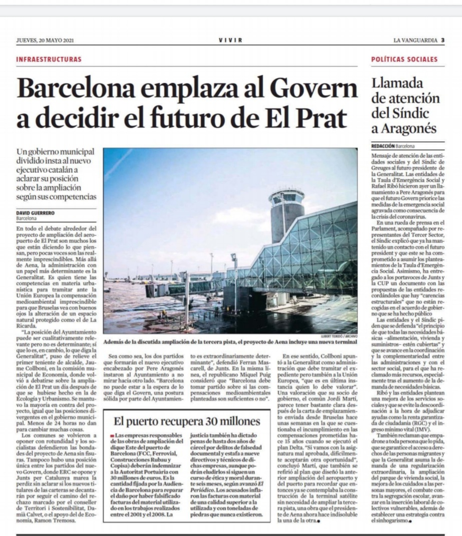 01.06.2021 Clamor de la sociedad barcelonesa por la ampliación de El Prat, que la Generalitat rechaza